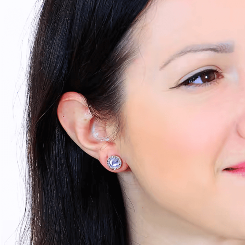 حلق نسائي أصلي من براند مزين بكرستال فاخر باللون السماوي