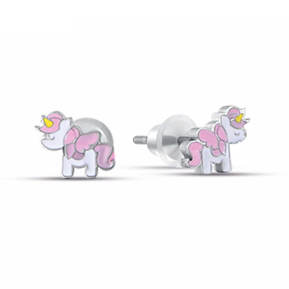 حلق أطفال فضي بشكل يونيكورن الوردي