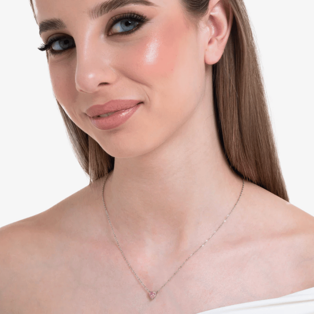 القلادة بتصميم عصري ومتطور. القلب باللون الوردي ، يعطي الأناقة لأي تركيبة ، مما يجعلها مثالية لأي مناسبة خاصة أو لإلقاء الضوء على مظهرك اليومي.
