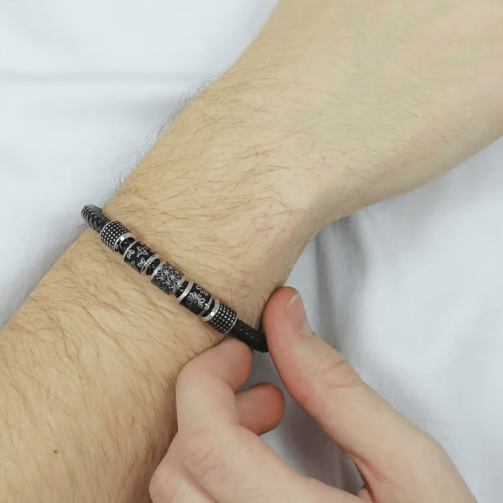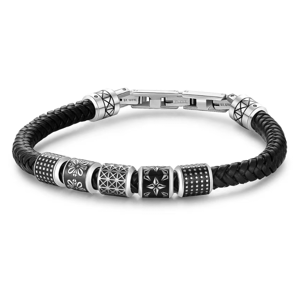 الاسواره مصنوعه من الجلد الفاخر باللون الأسود مع أشكال من الستيل